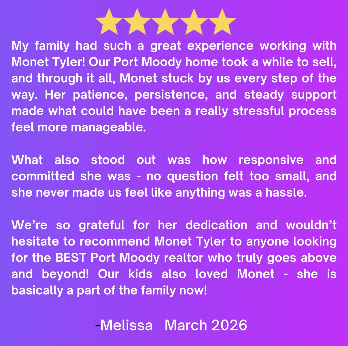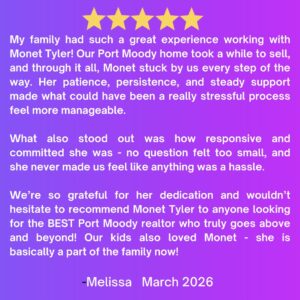 Tagged 5 Star Review! Monet Tyler Monet Tyler Real Estate Port Moody Port Moody Realtor Raving Fan Real Estate Royal LePage Royal LePage West